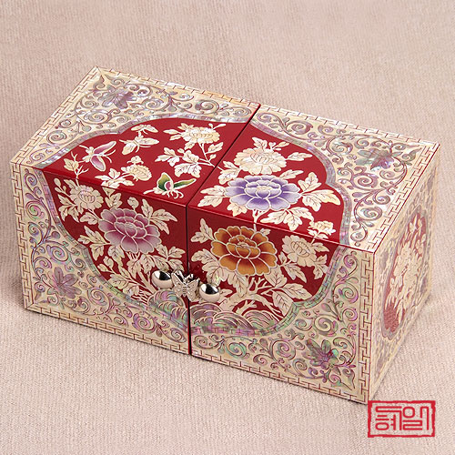 나전목단쌍함(적)